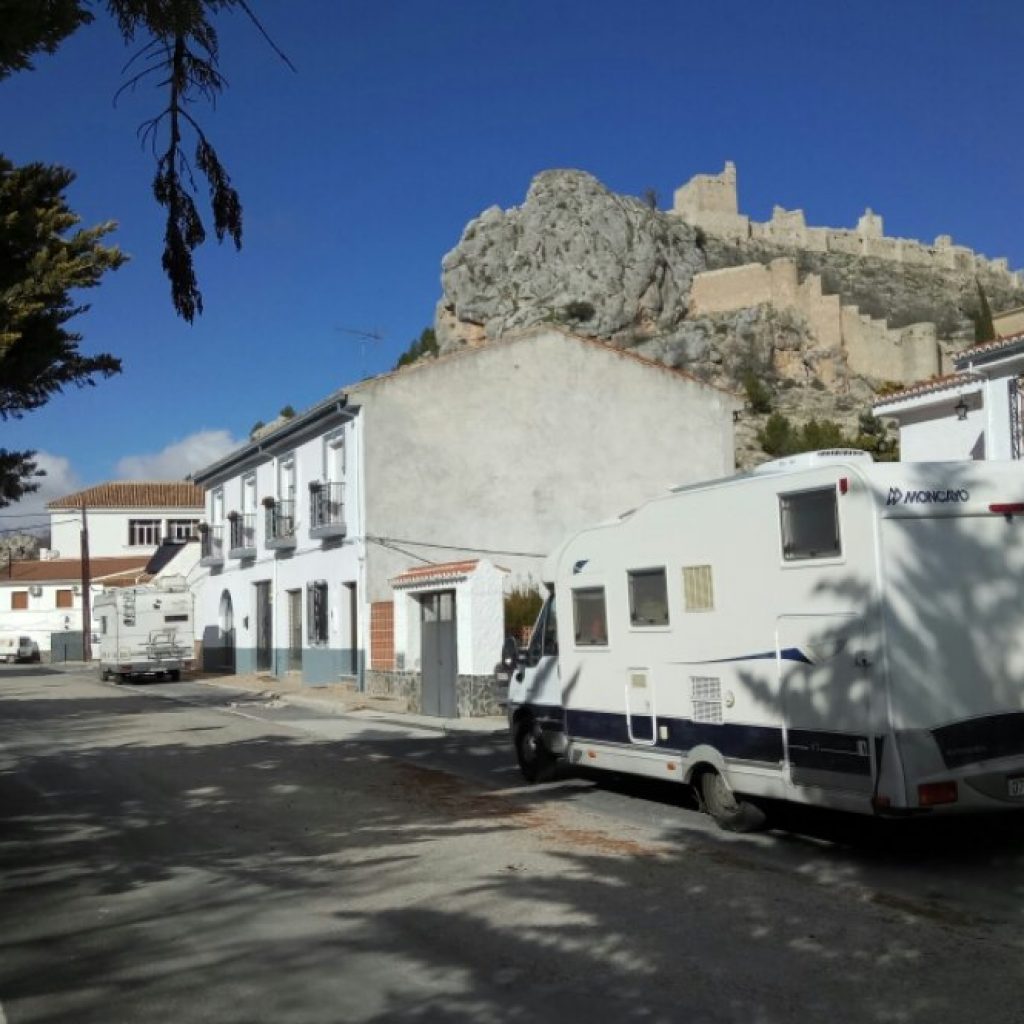 Parking by the side of a quiet road on the edge of the village. Stunning view across the plain towards the rising sun. From here you can visit the castle and also make the route of the PR A-84, called Ruta del Gollizno (derived from “gollizo”: narrowness of a place).