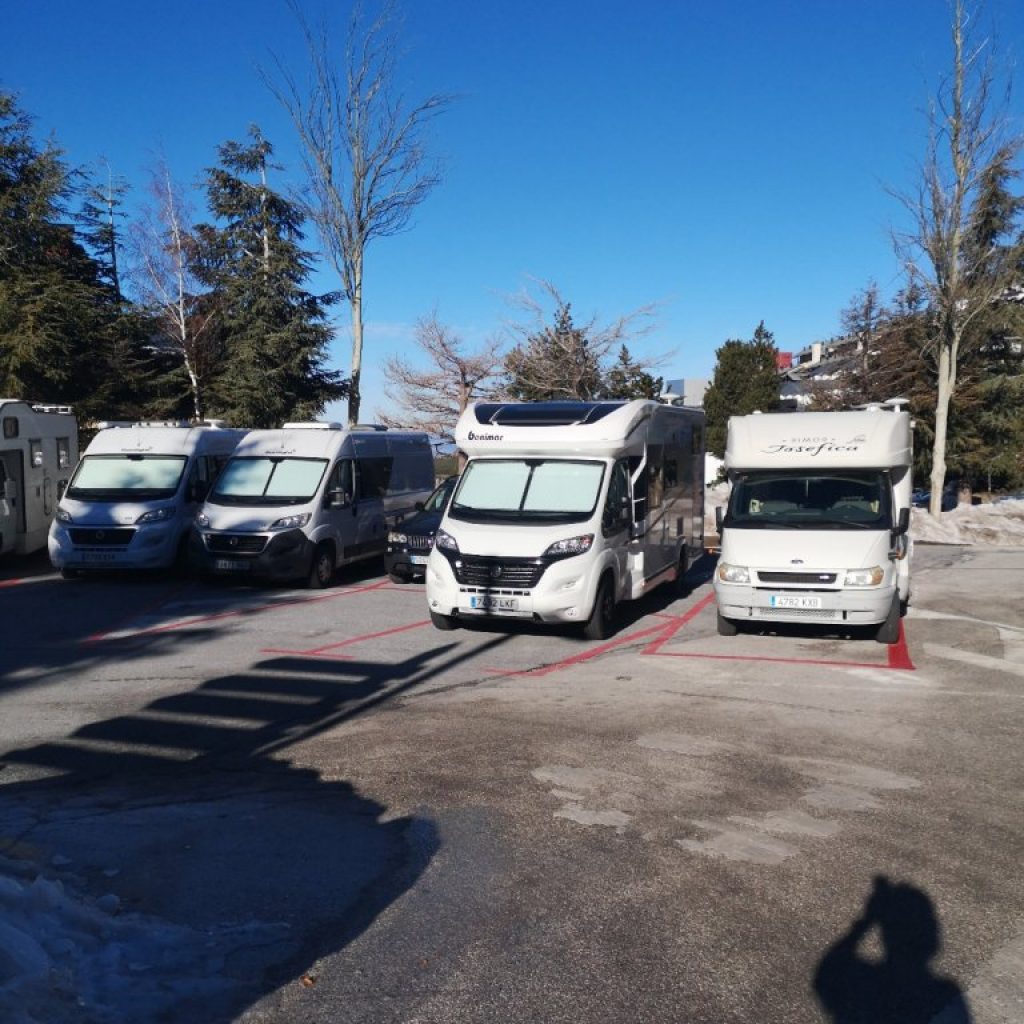 Parking day and night. Free of charge. A bit steep but I didn’t use chocks. We spent the night 3 AC and 3 campers. Right where you take the chairlift to Pradollano. And right there where the bus stops. quiet at night. Recommended to be free although without services. From 8:00 a.m. to 8:00 p.m. subject to a charge!